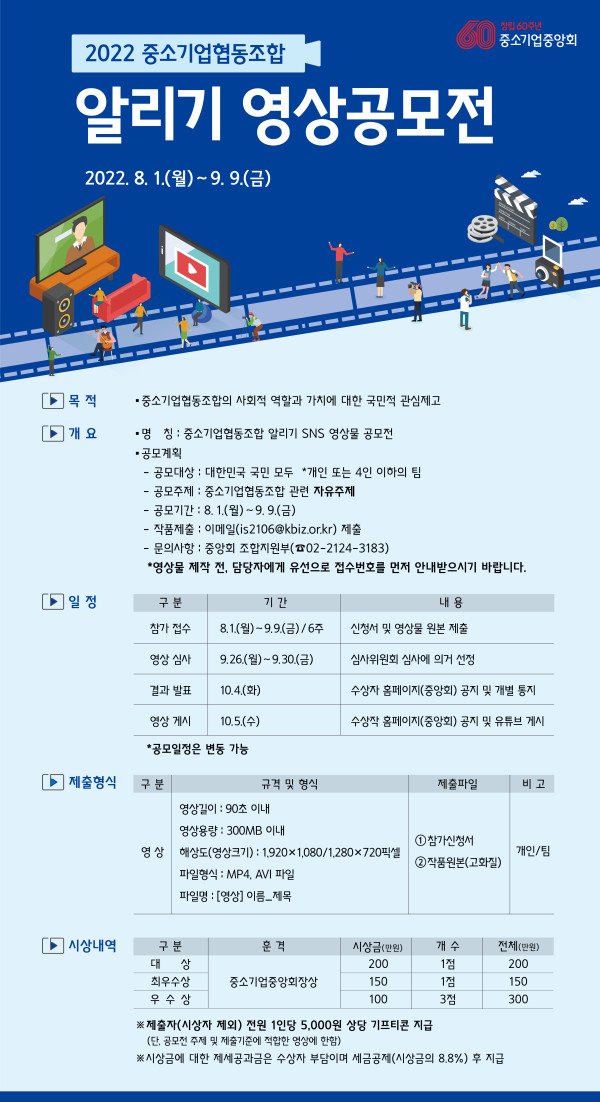 - 공 모 명 : 「2022 중소기업협동조합 알리기 SNS 영상물 공모전」