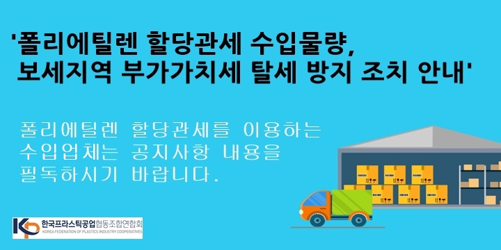 폴리에틸렌 할당관세 수입물량, 보세지역 부가가치세 탈세 방지 조치 안내